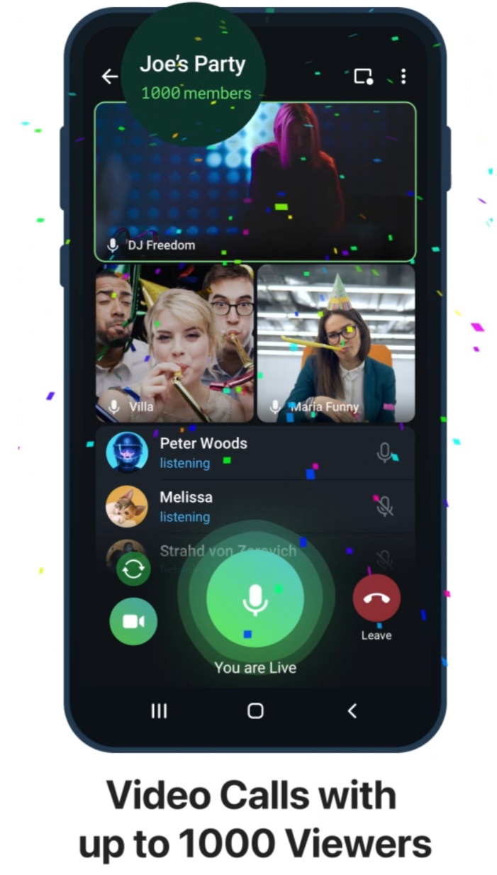 Una de las mejoras que tiene esta actualización de Telegram es la realización de videollamadas grupales que te permite comunicarte hasta con 1000 personas al mismo tiempo, esto sin duda es una gran opción para las videollamadas o conferencias. también otra de las mejoras que tiene esta actualización es que se puede ver los vídeos a distintas velocidades tal como los mensajes de voz. Además se puede compartir la pantalla con sonido en todas las videollamadas, estas funciones se han añadido a la app de Telegram.
